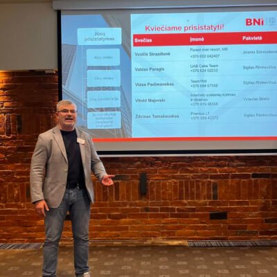 2025 m. rugpjūčio 7 d. BNI Ąžuolas verslo pusryčiai. Ačiū prezidentui Sigitas Rimkevičius ir jo komandai už pakvietimą ir profesionaliai suorganizuotą renginį. BNI® – didžiausia ryšių plėtros ir rekomendacijų organizacija pasaulyje.